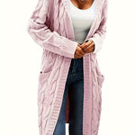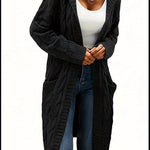 Damska Długi Kardigan z Kapturem | Otwarty Przód z Kieszeniami